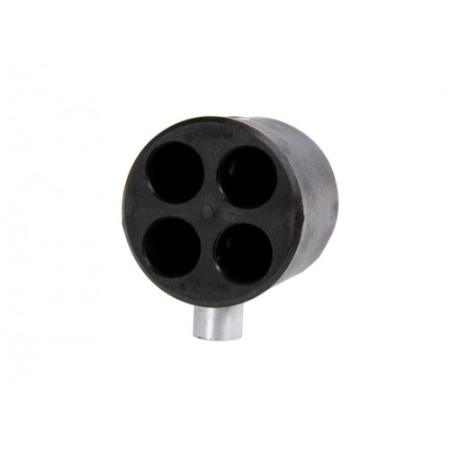 Über die vier Aufnahmen können weitere Stangen, Elemente oder einzelne Geräte mittels des P&D Spigots gesteckt werden. Der Verbinder ist Bestandteil der vertikalen 1,2m Pipes & Drapes Stange. Ebenfalls kann der Verbinder auf den Flex Adapter geschraubt werden um z.B. die horizontalen Stangen des Systems an Haken, Türen oder fest installierten Schienen einzuhängen.